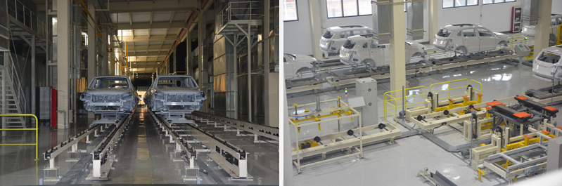 眾泰金壇基地涂裝輸送線,完成車身的涂裝生產任務,該車間承擔中、高檔轎車車身及其備件表面涂漆、防聲、裝飾及防腐任務。本工程范圍包括:前處理懸鏈、地面滑橇輸送線、PVC空中倒置滑橇輸送系統以及與此相關的機械部分。